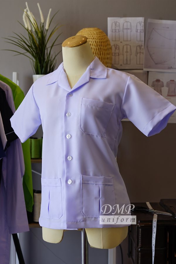 เสื้อกาวน์ตัวสั้นแขนสั้น คอฮาวาย(ผ้าดีวายสีขาว)